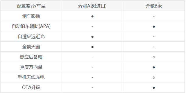 奔驰A级(进口)和奔驰B级配置对比