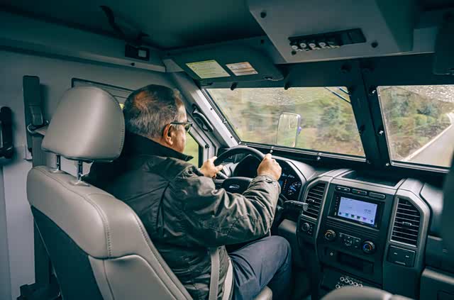 轮胎虽然不是防弹的,但也能够缺气续驶,以80km/h的速度行驶80km。内饰倒是没有明显改动,仍然是上一代福特皮卡的造型设计和配置水平,方向盘上的福特徽标也得以保留,这也有利降低制造成本。动力方面,所搭载的6.7L Power Stroke V8柴油机,能够爆发出325马力和983N·m的动力,推动7.2吨重的车身算不上强劲,但是加速表现也不会很拉胯,毕竟10AT变速箱的实力摆在这。