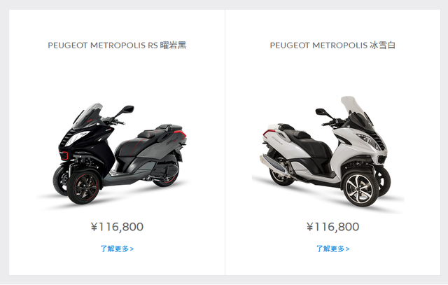 以国内为案例,标致Metropolis的价格是11.6万人民币 – 完全可以买一台不错的四轮小汽车了。