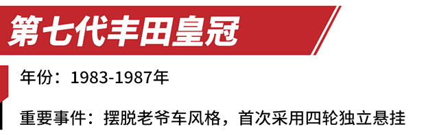到了1983年,丰田正式推出第七代丰田皇冠。这一代皇冠不仅取消了双门版,同时在外观上也发生了很大变化,比如换装全新的进气格栅、首次采用“水晶式C柱”的设计,同时废除前叶子板上后视镜的设计。可以这样说,第七代丰田皇冠彻底摆脱了“老爷车”的形象!这也导致第七代丰田皇冠在80年代初期引进国内一炮而红,1985年一年就进口了17250台,同时也是从这一代开始,丰田皇冠开始在国人心中奠定了高端豪华车的形象。