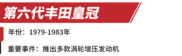 不过动力部分才是第六代丰田皇冠变化最多的地方。首先,第五代车型上的2.6L直列六缸发动机排量被提升到了2.8L,最大功率提升至145马力,峰值扭矩为235牛·米;同时2.0L版本以及2.2L柴油版发动机功率也得到全面提升。到了1980年,为了应对石油危机,第六代丰田还推出了2.0T直列六缸涡轮增压发动机,其最大功率为145马力,最大扭矩为211牛米。1982年,第六代丰田皇冠又推出了两款搭载2.4L涡轮增压柴油发动机,该发动机有电子控制燃油喷射和非电子控制燃油喷射两个版本,同时这两款发动机还曾经搭载在丰田旗下越野车兰德酷路泽上。