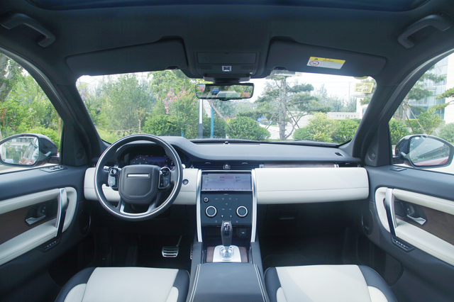 全车四个车门饰板与中控台配色相互呼应,深浅结合并搭配大面积实木饰板,大尺寸的全景天窗在打开遮阳帘(天窗不可开启)之后很有通透感。白色、木本色流露出英伦家居经典风格。
