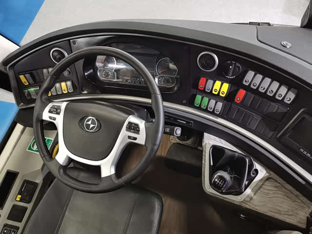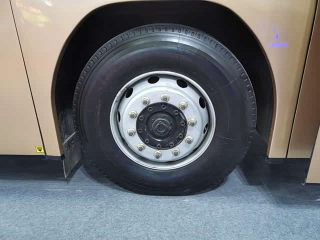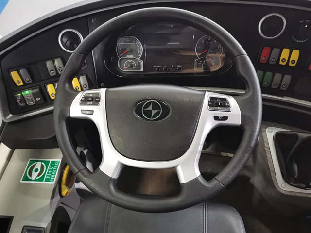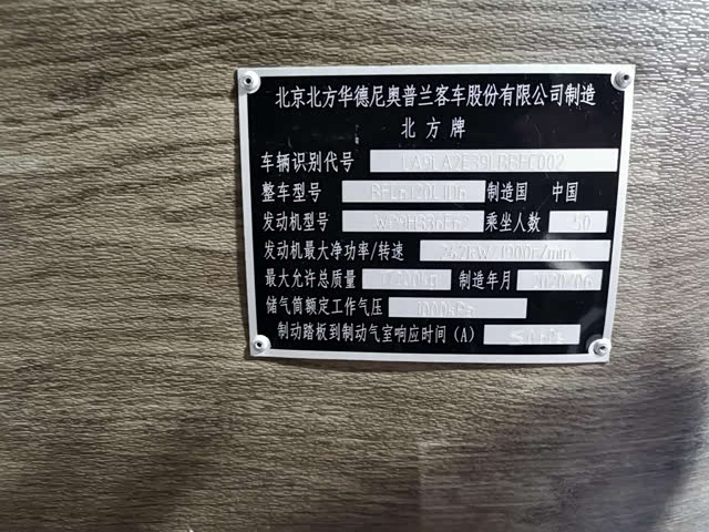 展车型号是BFC6120L1D6,满足国六排放标准,制造于2020年6月。整车尺寸12000 ×2550 ×3520mm,轴距5800mm。虽然展车型号里前面的数字也是6120,但是与老型号叫BN316的最早的BFC6120已经不可同日而语。以前的BFC6120型客车用的是道依茨V8风冷柴油机,现在的BFC6120L1D6型客车用是直6水冷柴油机,属于潍柴WP9H336E62机型,功率247kW /1900r /min约336马力,也可以选装玉柴YCK09350-60型柴油机。使用了新型发动机的北方客车噪音降低了不少,再也感受不到道依茨独特的声浪了。离合器采用萨克斯SACHS 430拉式离合器。变速箱可以选择法士特6S159型或6DS150型。前桥是尼奥普兰BFC30-1型7.5吨盘式桥。后桥是创捷13吨精磨齿盘式桥,整车总质量17.2吨,整备质量12.8吨。