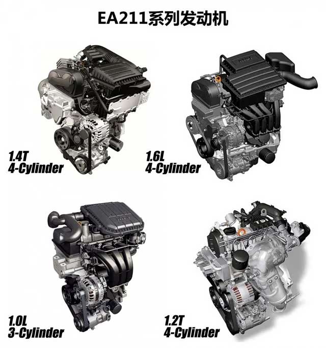 EA211系列的发动机排量主要分为1.2T、1.4T高低功、1.5、1.6自然吸气,搭载车型有高尔夫、速腾、大众主流的小型紧凑型车\SUV都是以EA211发动机为主,可以说你在路上看见10辆大众,有一半都用的是这款机子