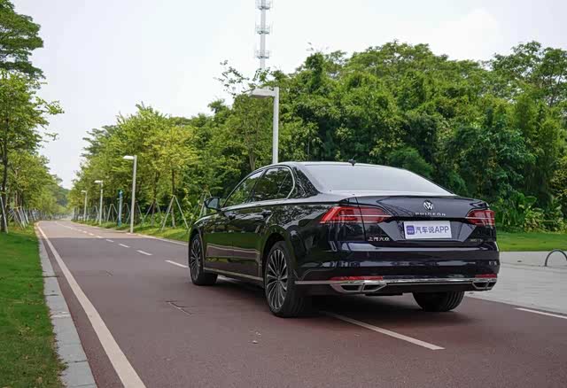 另外,辉昂车身侧面采用了修长笔直的腰线,整车的设计线条都凸显出行政车的调性。而车尾部分的设计就显得比较简约大气,两侧的尾灯造型精致犀利,底部采用了双边四出排气设计,大众车标下方的“PHIDEON”标识也让这款车型更具辨识度。