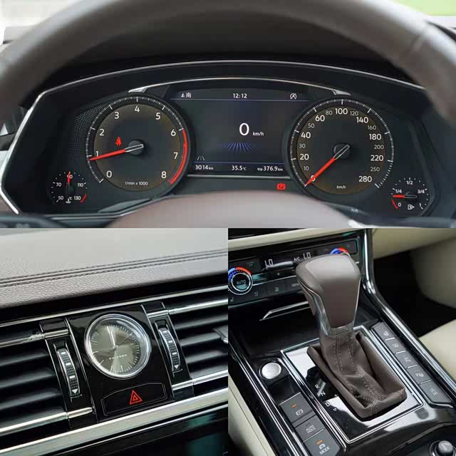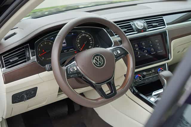 另外,中控台部分仍然保留了大众经典的设计,比如内嵌式中控屏、机械式的档杆设计等等,这些设计可能会让整套内饰显得比较呆板,但在中控台上方的钟表搭配下,还是能让人改变观念开始享受这套经典豪华的内饰设计理念。