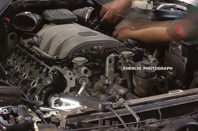 车出问题在引擎方面,引擎运行中出现了异常的声音,声音的响动是逐步变大的,车主描述突然一天,引擎的声音就像拖拉机一样,发出有节奏的咔哒咔哒的声音。声音来自引擎的气门室盖内,忽左忽右基本是判断左右都有响声,声音有节奏。接上专检检测并没有故障码显示。