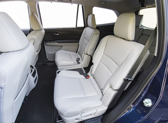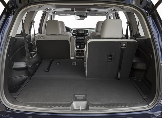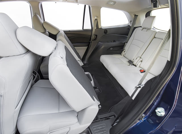 而从官图中,我们也能看出本田Pilot第二排有着比较客观的的腿部空间,能提供给乘客不俗的舒适。与此同时,Pilot的第三排座椅不像其它七座SUV只能应急使用,得益于较大的车身尺寸,无论是腿部空间还是横向宽度都不错。且第三排座椅后方仍有不错的储物空间,加上该座椅还支持4/6比例放倒,Pilot的装载能力相当不错,已经达到了MPV的水准。