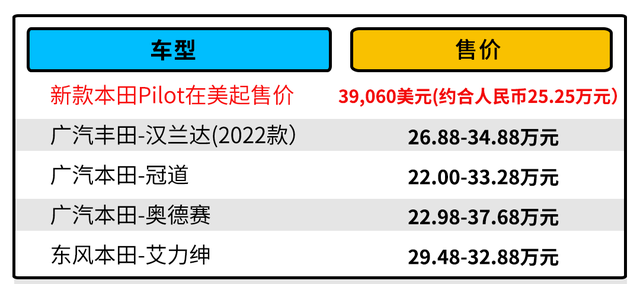 售价方面,据悉新款本田Pilot起售价为39060美元,折合人民币约为25.25万元,众所周知,本田在北美的售价与国内的售价非常相近,当然配置方面会有所区别。如果引进国内也是这个售价,那么对比新款汉兰达26.88万的起售价具有很大的优势,加上越级的空间表现以及本田一向良好的口碑加持,把汉兰达拉下马来完全不成问题。
