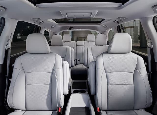 当然一向以“空间魔术师”著称的本田,内部实际乘坐空间往往出人意料,本田Pilot提供“2+2+3”七座布局和“2+3+3”八座布局可选。相比于传统“2+3+2”的座椅布局,本田Pilot第二排两座的布局具有更高的灵活性,座椅的前后深度可以进行调节,提高了第三排乘客乘坐时腿部空间的舒适度,同时第三排乘客可以通过第二排座椅中间位置更好的上下车。