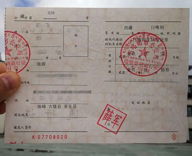 当然还有日喀则地区也可以办理去珠峰的边防证。如下图,网友办理的边防证。