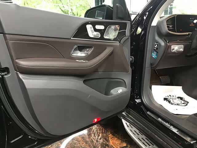 车门经常倚靠的部分均采用柔软的皮质包裹,十分舒适。开启车门后,上方红色光线可警示后方车辆以及行人,下面还可以照亮您脚下的路。金属材质的迎宾踏板十分精致,质感不错。如果不习惯踩脚踏下车的话,固定式踏板在下车时比较容易卡到腿。中控锁位于主驾车门把手处,分两键控制,更加简单。四门车窗均可一键升降,不用持续操作,跑高速取卡时很方便。迎宾灯让您每一次上车更有归属感,与朋友一同出行时,奔驰徽标也能让您更有面子。