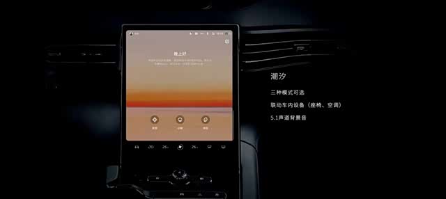 对应「小憩」、「冥想」、「呼吸」三个模式,座舱会通过支持 5.1 声道的融合沉浸式背景音、座椅位置、空调温度、循环模式、氛围灯光、车内音响等设备的联动,来为使用者提供舒适的空间氛围,充分放松身心。
