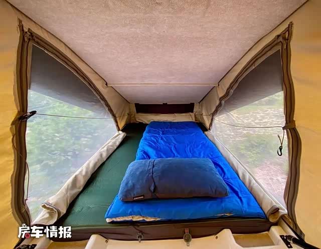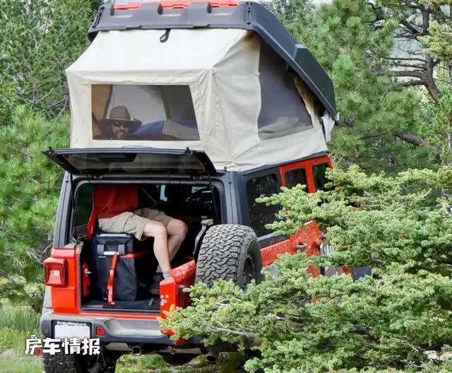 这个Hatchet弹出式车顶是专为牧马人设计的,在一分钟内就可以设置好,Hatchet 帐篷弹出并通过后杆框架向后延伸,形成一个大尺寸的帐篷,并且配有四个带拉链的帆布通风窗,整体的空间也可以躺下一个人。头部还配备了两个托盘,可存放钱包、手机和手表等日常物品,也方便平时拿取。