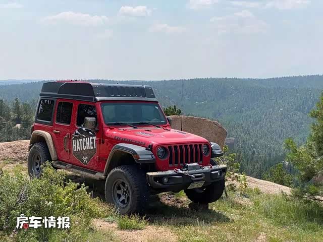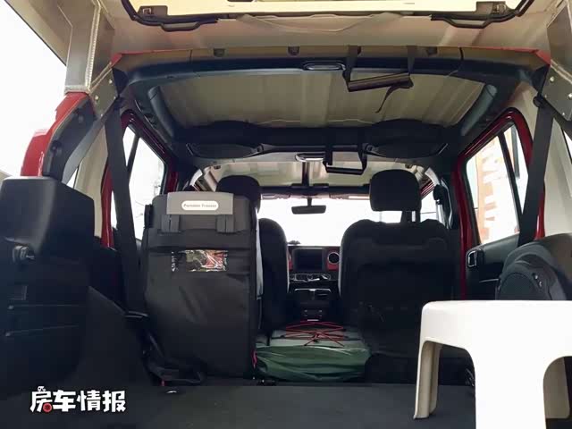 而今天我们要介绍的这款露营车在保留了牧马人的原始外观之上做了一小点改动,就是在顶部加入了一个Hatchet弹出式车顶,使整辆车的高度有所升高,高度不到0.3米,所以这并不影响它的整体通过性。