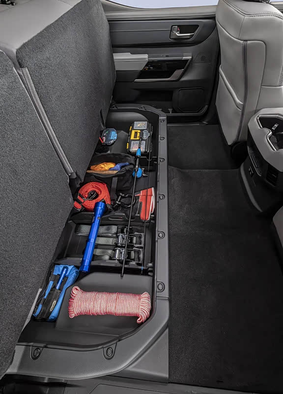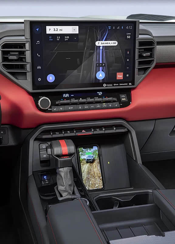 AVS 自适应可变悬架也首次应用在 Tundra 之上:它能根据不断变化的路况调整阻尼力度,轻松应对大坑洼 、颠簸及碎石路面;线性的电磁式 AVS 在前后减震器中内置执行器,可根据条件不断改变阻尼力,所有这些都增强了新款 Tundra 的操控性 、稳定性和舒适性。
