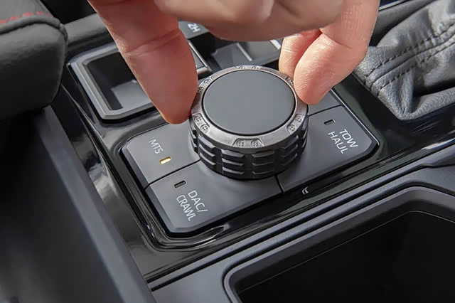 多连杆后悬架还可选装新型空气悬架系统,该系统适用于 Tundra 的高配车型,它具备自动和手动调平功能,可选择高/低/正常三种高度模式 —— 「高」专为低速越野驾驶而设计,当速度超过29km/h将返回正常高度;该系统还优化了阻尼设定,降低越野驾驶时的侧倾刚度。「低」高度模式便于货物装卸,一旦车速超过13km/h它也会恢复正常高度。是不是很方便?