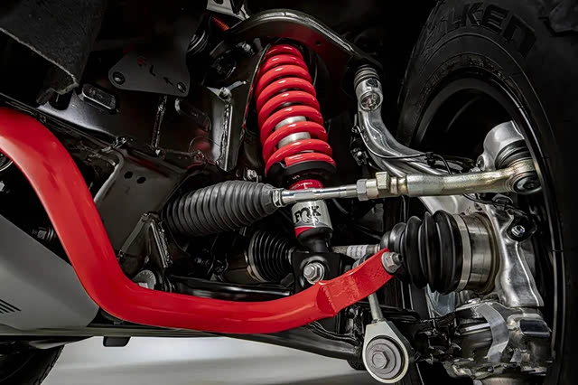 新款 Tundra 的前后悬架标配双管式减震器,减震器采用三重油封和加长防尘罩来加强保护并提高耐用性;还有更轻更硬的新型铝锻造转向节,与防止腐蚀和应力裂纹的钢嵌式转向球头。TRD 越野套件则采用 Bilstein 单管减震器,可改善公路和非公路行驶的阻尼。