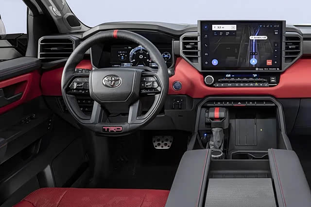 此外,TRD Pro 车型还获得了额外的越野组件,包括新的 TRD Pro 前稳定杆 、红色涂装悬架部件 、TRD 铝制前护板及车底护甲,还有 Falken 全地形越野轮胎。