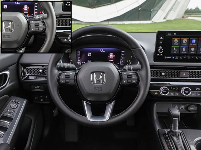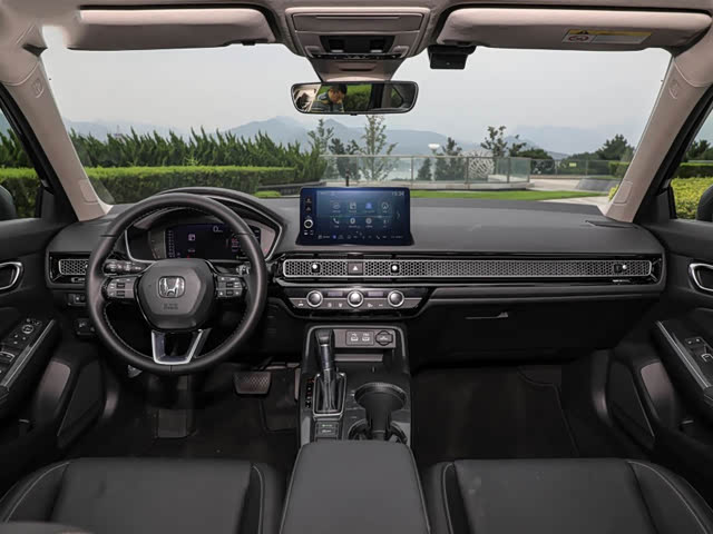 相比外形更平实的改变,车厢的变化倒有更多惊喜。这套所谓“Fine Morning Interior”理念布局的内饰,字面意思是“很好的清晨”,我们理解它是要表达一种清新而又积极向上的感觉。中控台采用了贯穿式出风口造型,蜂窝状面板与金属材质搭配确实很有新鲜感,悬浮式中控屏耸立在中央也显得很精神。思域一直很重视驾驶视野,这台车的前方视野角度达到87度,比上代提升了3度左右,加上较细的A柱和后移的后视镜,两侧盲区缩小了不少。