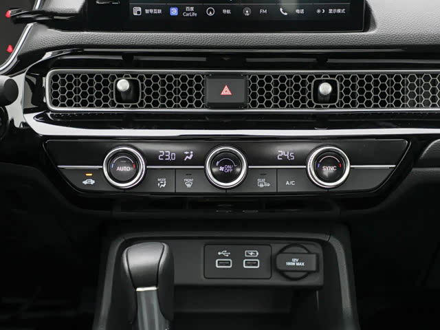 悬浮式9英寸中控屏成为全系标配,高位布局便于查看,如果屏幕再大些就更理想了。左侧设主页和返回键及音量旋钮,底部还有一排快捷键,提升便利性。车机搭载了Honda CONNECT 3.0智导互联系统,采用大图标显示,便于触控,屏幕的灵敏度还不错,支持OTA、车家互联、数字钥匙、语音识别控制、车载语音购物、电子支付等时髦功能,功能向自主品牌看齐。