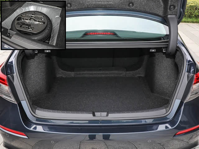 尾厢拥有良好的纵深和高度,虽然受到两侧轮拱凸起影响,但足够日常所需,长途旅行也基本够用。后排座椅支持4:6比例放倒,但受制于通道狭窄,只能放置长形物体。地板下方配备有非全尺寸备胎和换胎工具。