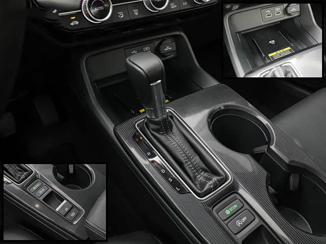 挡杆台的位置较低,采用拉丝烤漆面板提升运动感。机械式挡杆比较长,很奇怪为什么还不更换电子挡杆,不仅看起来很落伍还影响了前方储物格取放手机。后方设有经济模式、自动启停、电子手刹和自动驻车功能按键。右侧是两个带限位器的水杯槽,前方手机储物格内置两个USB接口、12V电源,次顶配和顶配车型还带有无线充电模块。