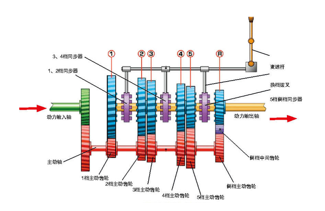 了解燃油车动力系统传递原理的网友都知道,车辆的动力乃是由发动机产生,通过变速器传递至车辆轮胎,变速器输出端和车辆轮胎乃是刚性连接的,变速器的输入端与发动机输出端直接连接,变速器内部有齿轮,通过改变不同的齿轮啮合可控制变速器的传动比,传动比变化后会直接导致变速器的输入端转速发生变化,从而改变发动机的转速值,相同的车速条件下,不同的变速器挡位,可以得到不同的发动机转速值(50km/h,5挡时发动机转速1600rpm,4挡时发动机转速为2000rpm)。