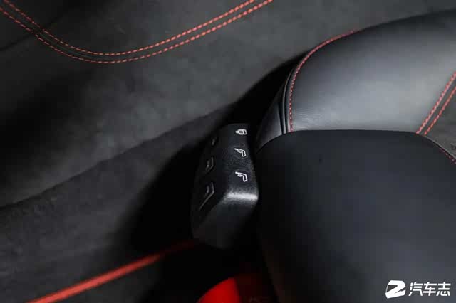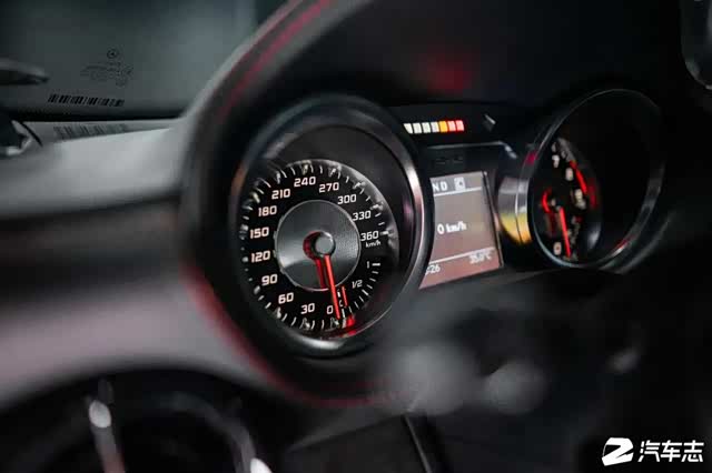 除此以外,内饰当中也有着不少的Black Series专属设计。方向盘上红色的回正标识、黑色背景色的仪表盘等等。且关于车厢中还有两个想要分享的小细节,一是360公里/小时的表底配合换挡提示灯,能让性能氛围进一步增强;另一是有关驾驶的各项调节都被放在了驾驶员侧,更便于驾驶员的操作。