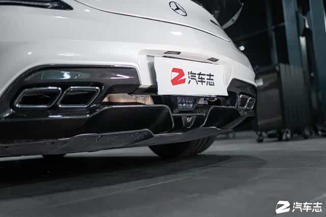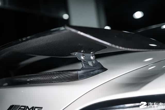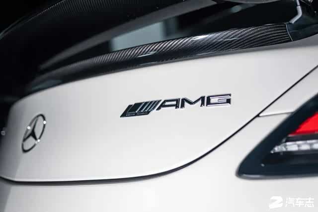 尾部相对来说会比前脸温和一些。对比普通SLS AMG上的电动升降小尾翼,在SLS AMG Black Series上被替换成碳纤维材质且带有手动角度可调的固定式尾翼。当然,变化可不止这些,普通版本的双边共双出被替换成双边共四出,且尾嘴上还有着AMG标识的蚀刻,细节足够到位。