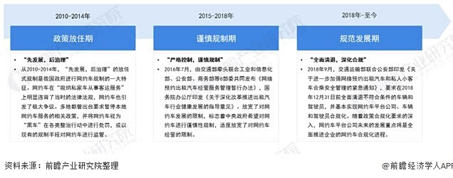 我国网约车行业政策发展与行业发展历程相一致,总体来看我国对网约车的监管制度经历了从“政策放任”、“谨慎规则”、“规范发展”三个不同的时期。