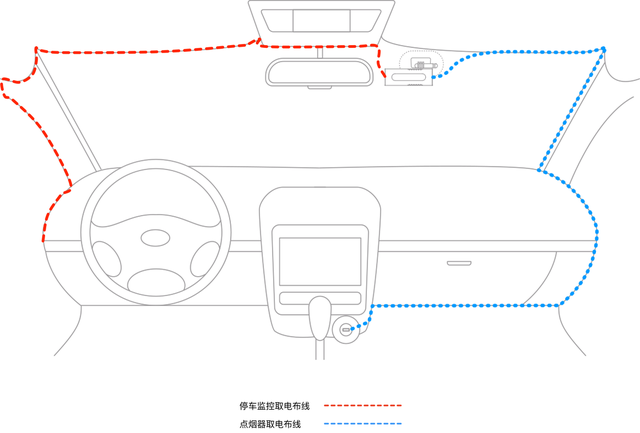 点烟器、USB口取电:走线方法完全一样,只是接口不同,优点是自己动手就可以完成,缺点是熄火后会断电,则行车记录仪也是不能工作的。