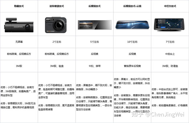 行车记录仪种类介绍及优劣势对比