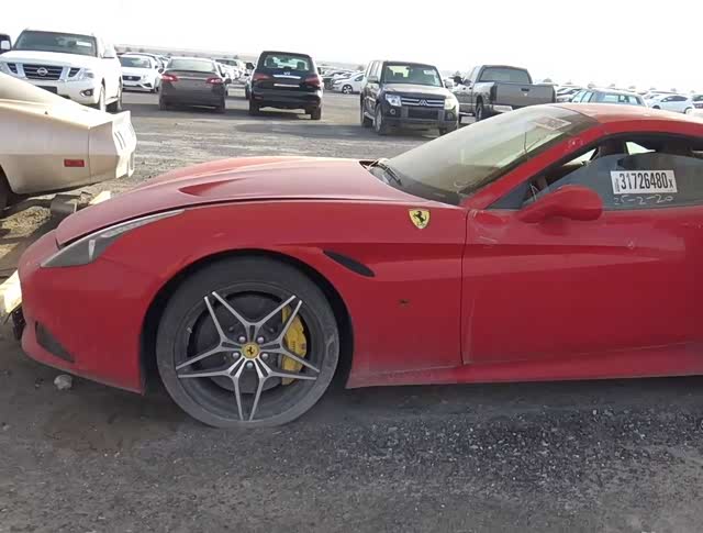 这里只出售整车,你想买点零部件是不可能的。由于车子来自全球各地,有左舵,有右舵,废车场的大部分车的车门都是可以开的,随时随地让你检查车况。这台法拉利从外部看并没有什么大碍,如果你想买走,车窗上有编号,进入拍卖程序,价格合适就是你的了。
