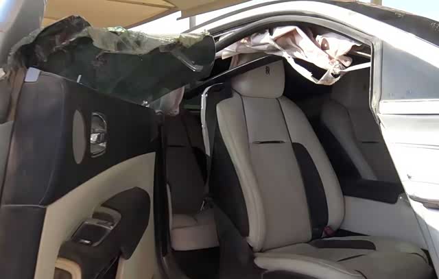劳斯莱斯右前已经损毁严重,把劳斯莱斯开成这样也挺狠的。如果不是购买核心部件的拆车件,那拆车件是非常高性价比的选择,像劳斯莱斯这样的事故车,遇到事故之后定损达到车价的百分之八十,保险公司会把这台车定义为报废,然后就送到了这里。你把它拍卖走,拿到原车上的零部件,抛开损耗的情况不说,质量一定比副厂件要好,和车子本身的适配性也好。