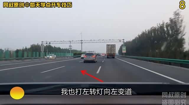 趁着左侧车辆超过我并拉开一定距离后,观察到后方近距离无车辆,我也打左转灯向左变道,避免在接下来的出口实线车道线区域,继续跟行在大货车后面,被大货车的慢速长时间压制。