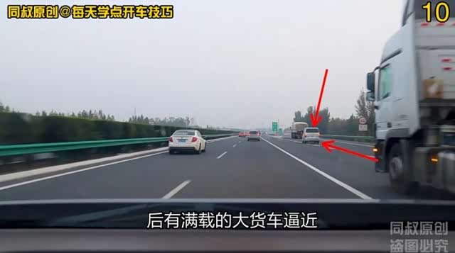 而后方的满载大货车也正在开过来,如果后方大货车也要进服务区,对于微面来讲,前有大货车慢行挡道,匝道下坡路段上,后有满载的大货车逼近,你说他会不会看后视镜,看到的话,心里会不会慌?