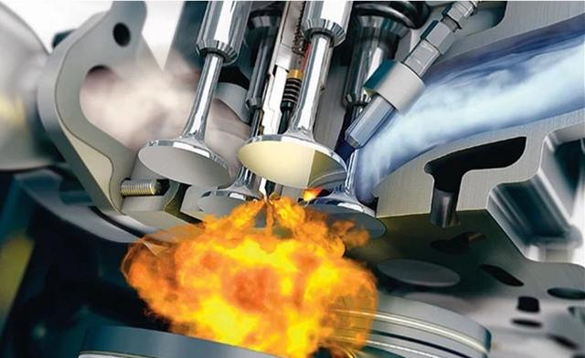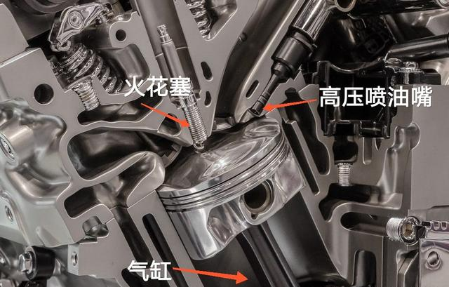 缸内直喷顾名思义就是喷油嘴戳在气缸里,直接把汽油喷入气缸。听起来和柴油机挺像,其实和柴油机还是有区别的。缸内直喷发动机也是在进气冲程开始向气缸内喷油,让进气气流与汽油充分混合,使汽油蒸发,形成混合气。然后在做功冲程,由火花塞点燃。