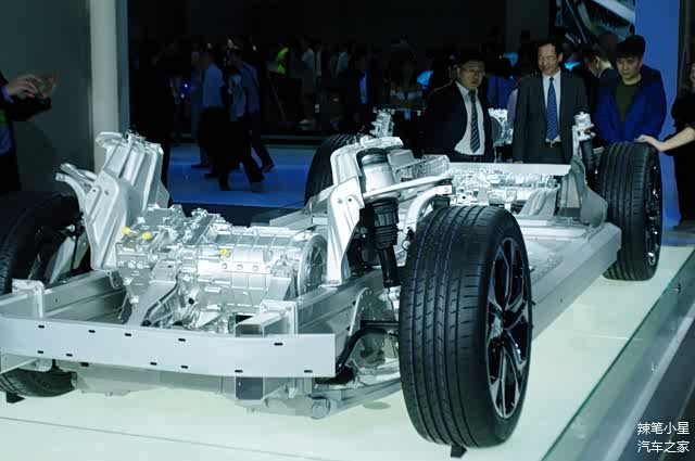 ↑NIO ES8车型前后轴双电机布置(摄于2017年上海车展)