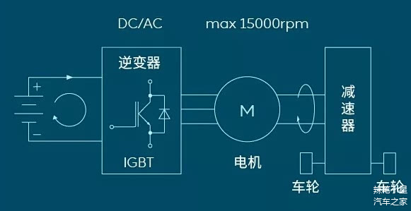 ↑蔚来汽车纯电动动力总成能量传输示意图(来自蔚来汽车)