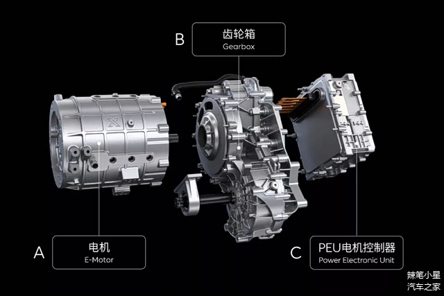 1. 高度集成(一体集成电机E-Motor、齿轮箱Gearbox和逆变器PEU电机控制器)