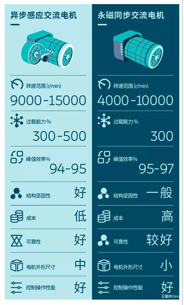 ↑异步感应交流电机与永磁同步交流电机特性比较示意图(来自蔚来汽车)