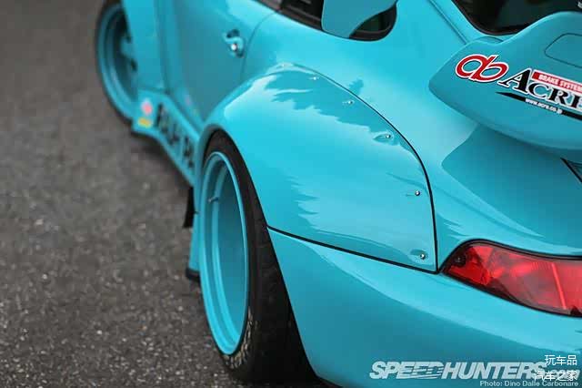 后轮翼子板和pumped fenders挡泥板通过后期的铆钉结合到一起,这是十分典型的RWB表现自我的一种风格。