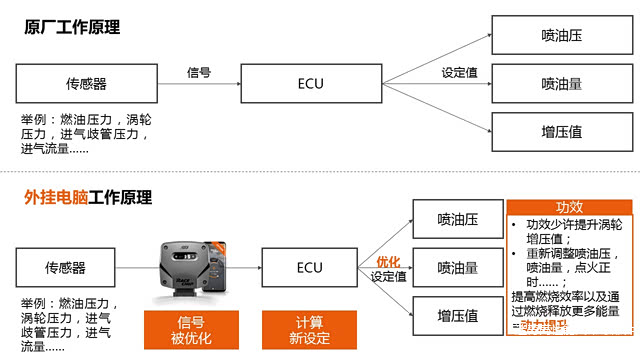 外挂电脑介入传感器与ECU之间,对传感器的信号进行“优化”……