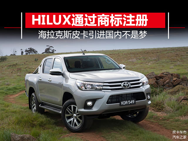 不过,本篇我并不是要对海拉克斯的历史进行回顾,而是要为大家带来一个十足劲爆的消息,海拉克斯皮卡引进中国已不是梦。根据从商标局获取的信息,丰田汽车已经完成对“HILUX”商标的注册,商品及服务类型包括:汽车、厢式汽车、运动型多用途汽车、卡车、大客车、公共汽车、电动运载工具、陆地车辆马达、陆地车辆引擎......