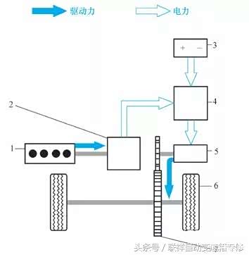 根据国际能源组织(IEA) 的有关文献, “能量与功率传送路线” 具有如下特点的车辆称为混合动力汽车: