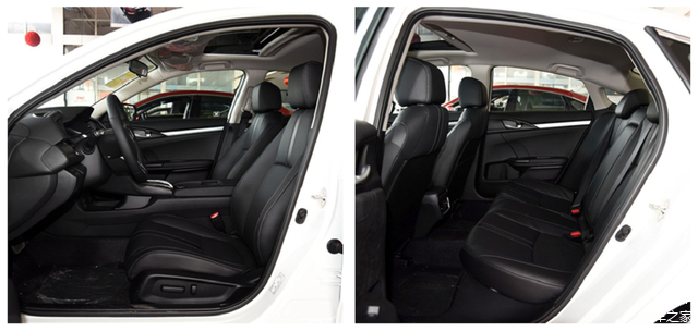 本田思域的车身尺寸4649mm/1800mm/1416mm,轴距2700mm。与同级其他车型相比已经属于中上等表现,乘坐空间也比较宽裕,不过由于溜背式造型设计,即便后排座椅呈仰角式设计,头部空间却依旧表现不佳,而且后窗的面积也不大,长时间乘坐难免会有一定的压抑感。