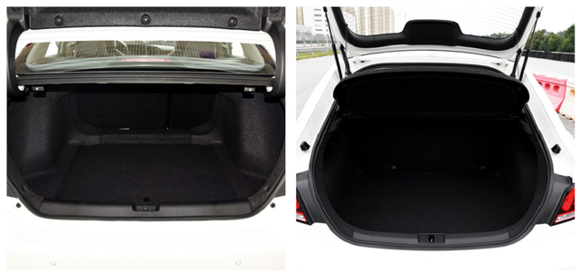 作为同级别的两台车,整体尺寸相差不大,不过名爵6作为后来者,就如同真的专为针对思域而来的一样,每一项数据都要比思域大一点。虽然两车采用了溜背式造型,但名爵6掀背式的尾箱在实用性方面比思域的传统三厢设计要强上不少。