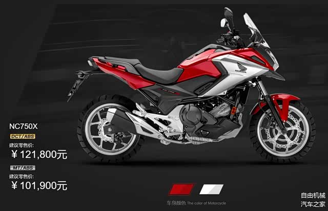 本次升级之后,NC750X的售价变更为¥101,900元(MT版本)和¥121800元(DCT版本),同时提供红白两种车身涂装选择。