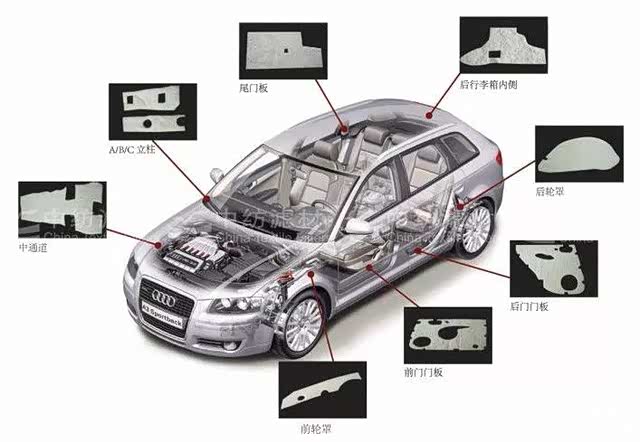 同样泰哥举一个简单的例子,车辆的钣金件就是阻隔车外噪声传入车内的第一道防线,为了改善车内噪声,车辆钣金件就常常使用毛毡等软性材料,将声能转化为热能。
